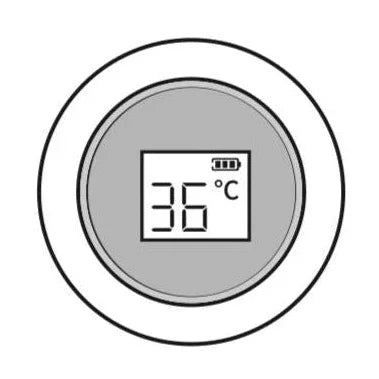 - The outer shaded ring is the touch-sensitive area. The inner screen shows temperature and indicator lights.