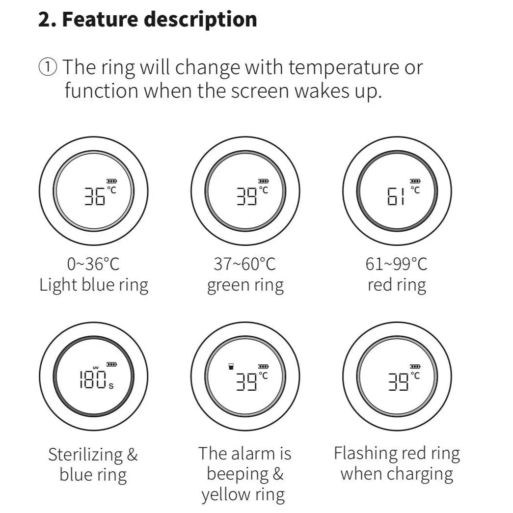 - When the sterilization cycle is active and interrupted due to unsafe temperature or removal of the cap, the red ring will flash, and the cycle will stop automatically.